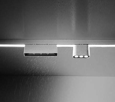 The IP System® Outdoor is a modular, IP65 rated linear lighting system for outdoor architectural applications such as facades and terraces. Its watertight track allows the integration of multiple light fixtures.