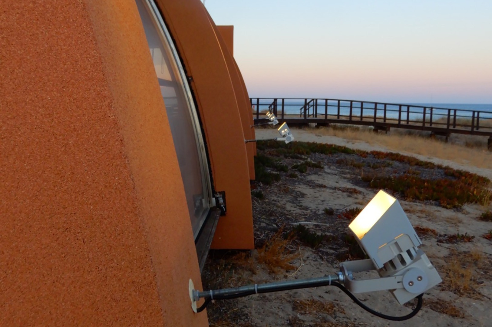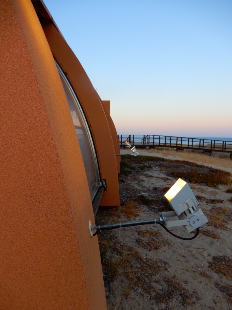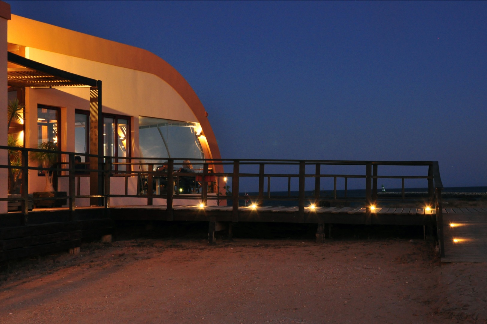 Designed as a luminous landmark, this beachfront restaurant glows warmly across the bay. The combination between its architecture and light transforms this coastline restaurant into a point of reference visible from Lagos.