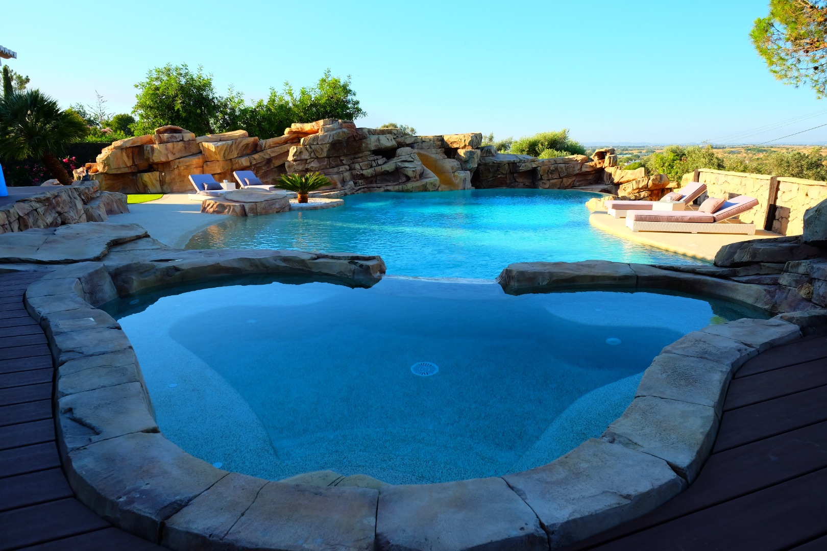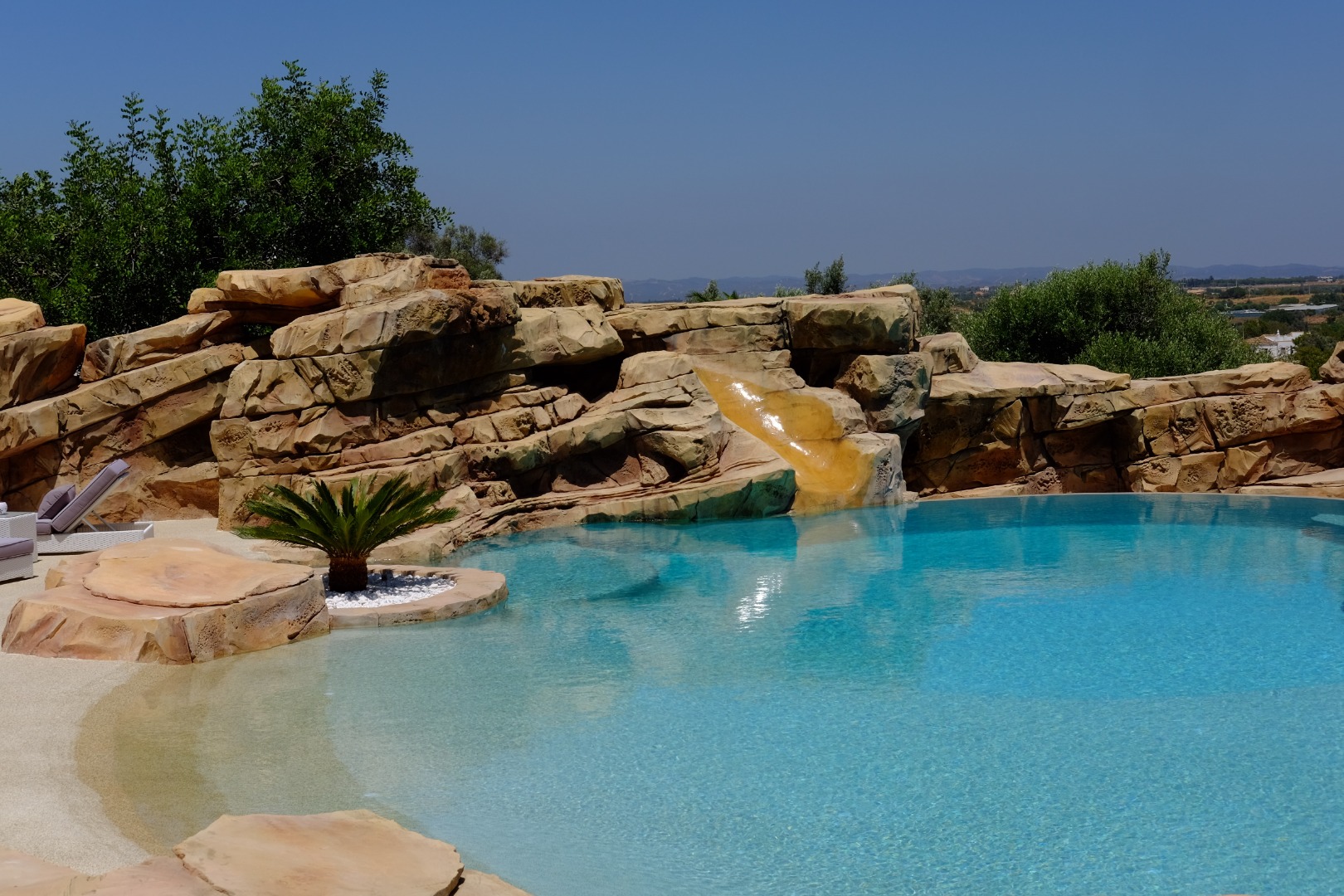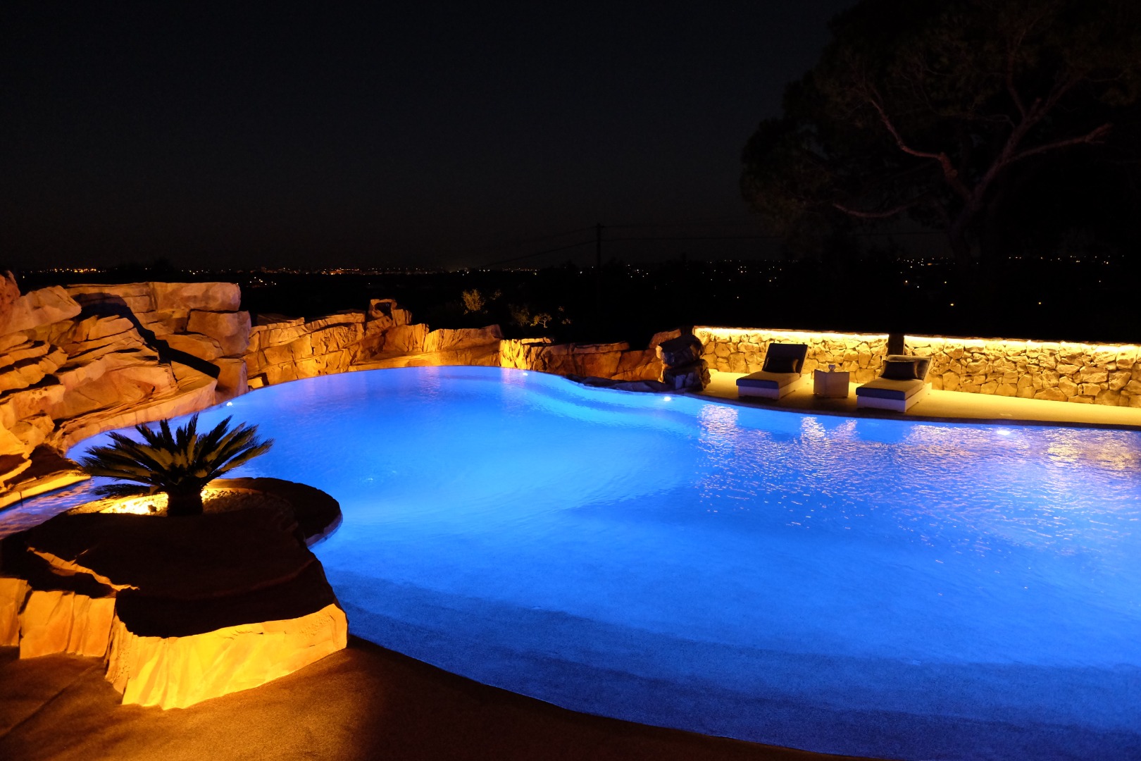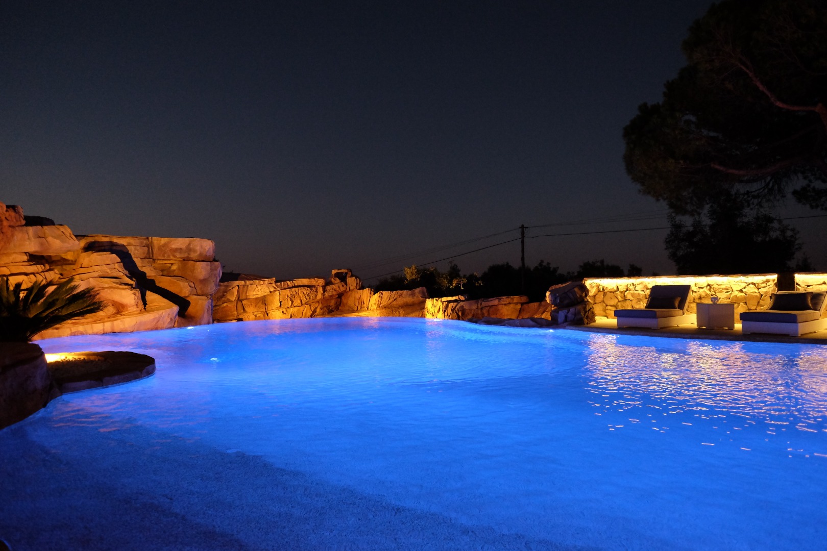 This stunning rock pool garden blends natural textures with nice lighting, creating a magical retreat. The interplay of water, stone, and soft illumination transforms the space into a tranquil escape, perfect for relaxation. A true harmony of nature and design.